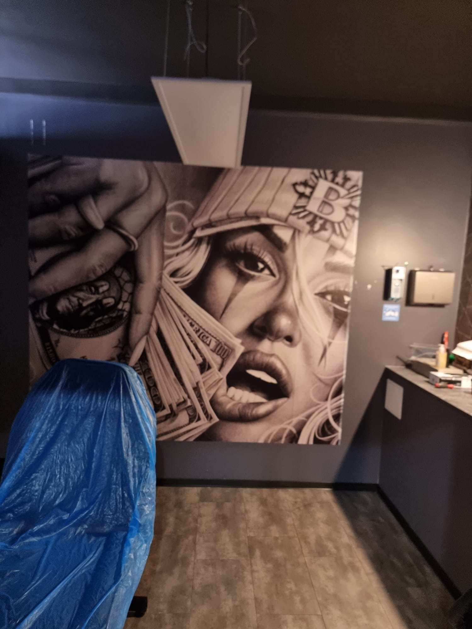 Es gibt fast nichts, auf das wir nicht drucken können. Und wenn es mal keine Wand ist, sondern ein Spiegel, eine Deckenplatte (vor Montage), dann bedrucken wir das auch. Grundsätzlich geht der Druck auf